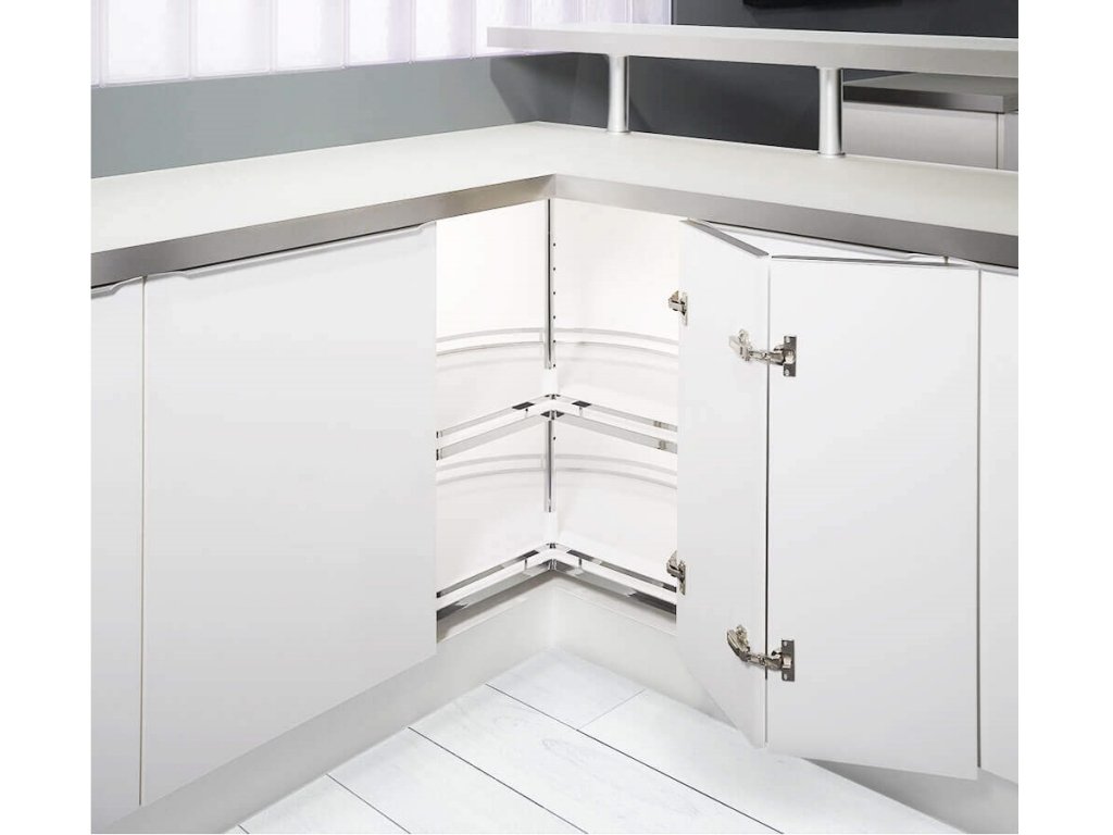 Osa pro rohové spodní skříňky. Otočné o 270° = 3/4. Nastavitelná výška osy 655 - 745 mm.