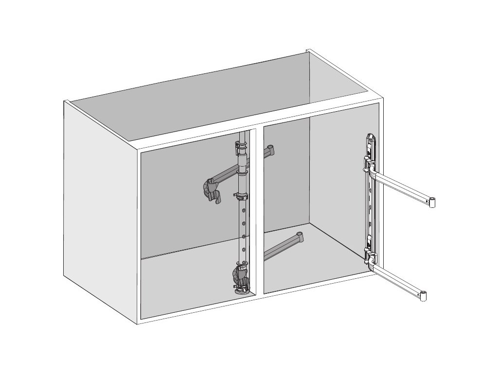osa se montuje jednoduše do korpusu pomocí instalačního materiálu (součástí sady). Osa je kompatibilní jak na levou tak na pravou polici.