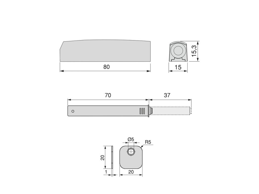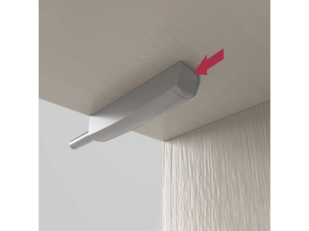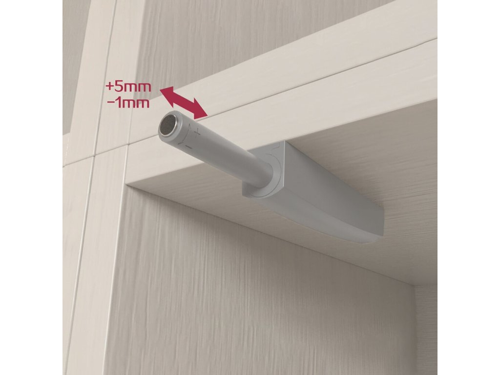 Používá se spolu se závěsy bez pružiny nebo s tlumením. Zámek se montuje přímo na korpus pomocí přiložených šroubů a držáku délky 80 mm nebo je také možnost jej zavrtat do hrany korpusu. Nastavitelná hlava v rozsahu od −1 mm do +5 mm umožňuje přesné doladění zavírání i u mírně nerovných dvířek. K dispozici ve třech elegantních barevných provedeních: bílá, šedá a antracitová.