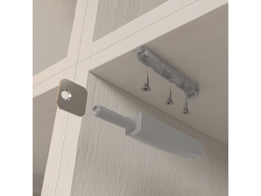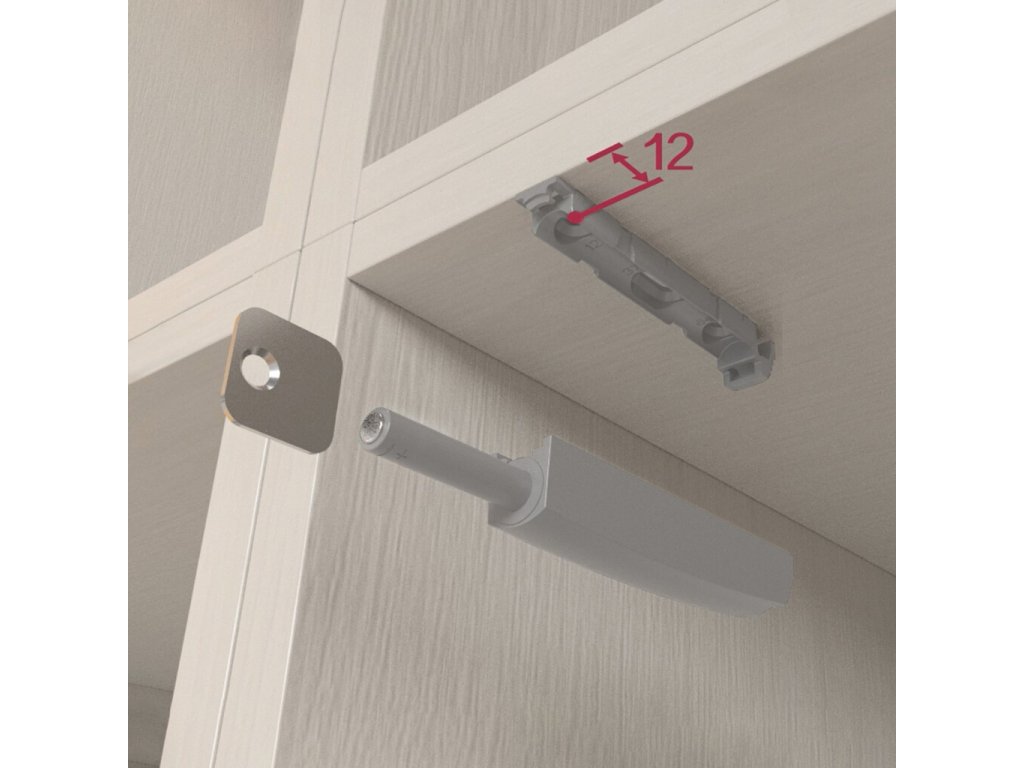 Praktický nábytkový píst pro Push otevírání, umožňuje otevírat dvířka bez úchytek – stačí lehce zatlačit a mechanismus se postará o otevření, zavření pak proběhne dotlačením dvířka. Magnetický systém s tahem 2,5 kg zajišťuje bezpečné zavření a tichý chod, takže se hodí i do moderních kuchyní, obývacích stěn či koupelnového nábytku.