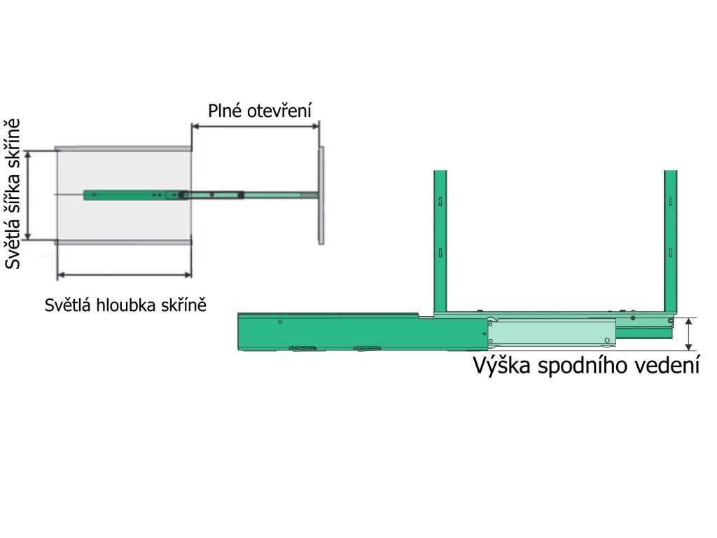 Plnovýsuv ze systému DISPENSA pro potravinové skříně s nosnotí 100 kg. Výsuv zabírá minimální místo ve světlosti potravinové skříně. Rám jednoduše zacvaknete do výsuvu pomocí ClickFixx.