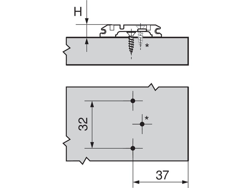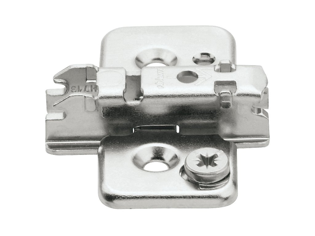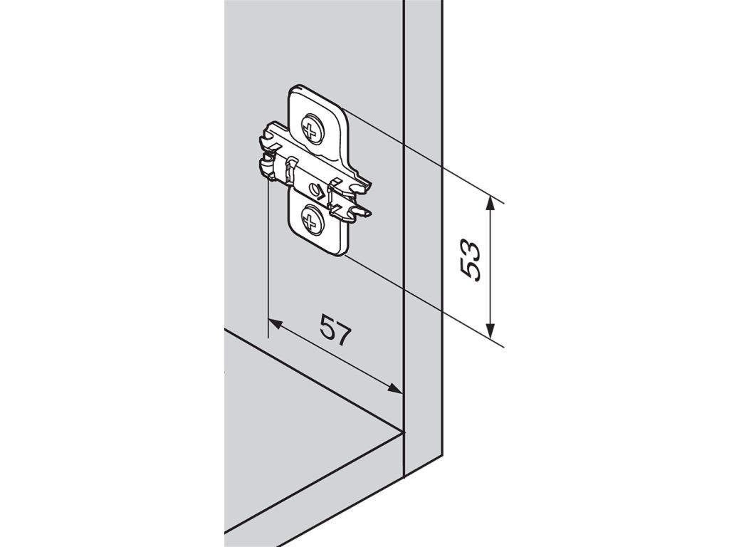 Montáž závěsu probíhá nacvaknutím závěsu na podložku. V případě těžších dvířek doporučujeme použít pojistný vrut uprostřed podložky.