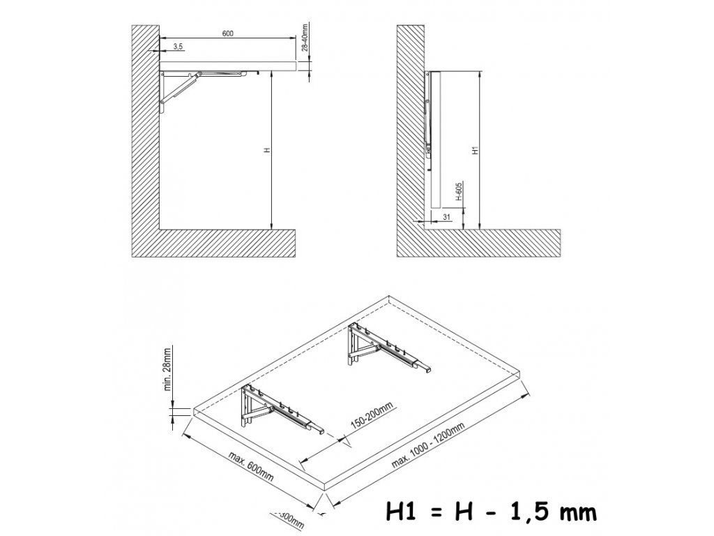- Vhodné pro stolové desky: 28 - 40 mm (pro dosažení uvedených nosností)