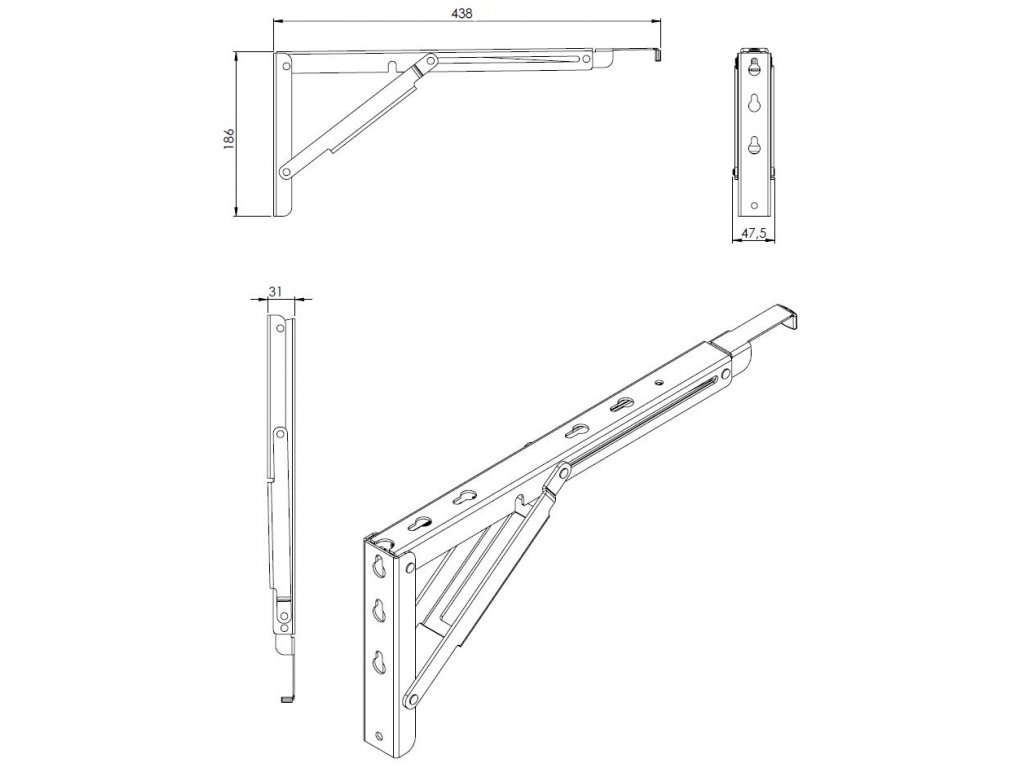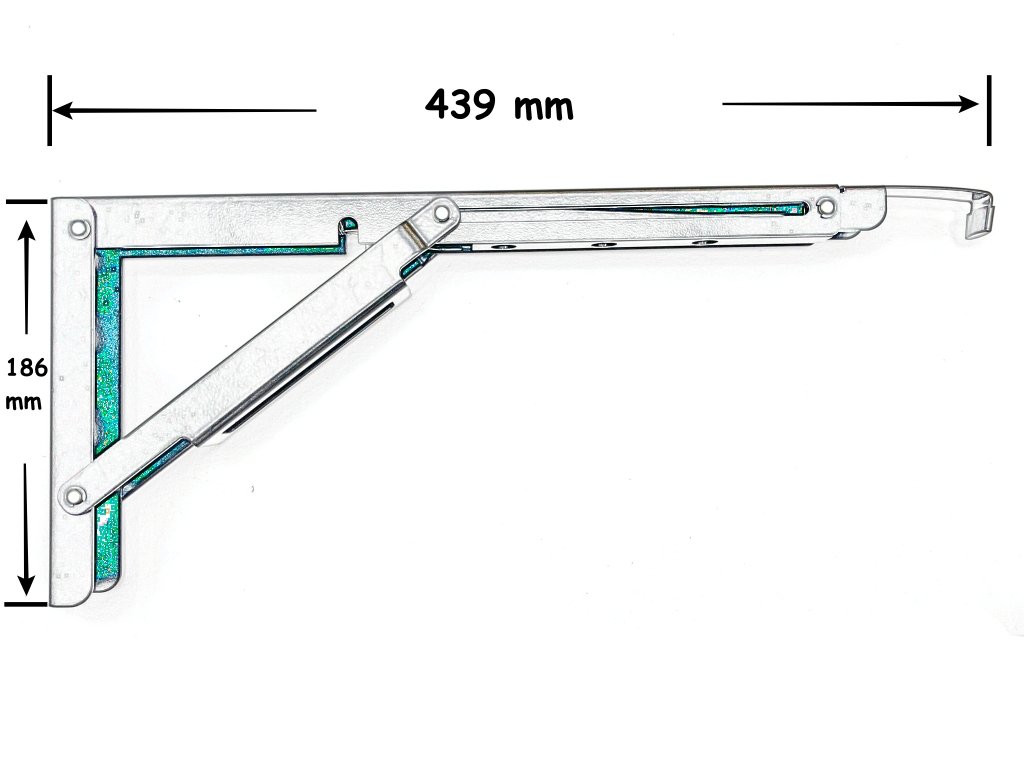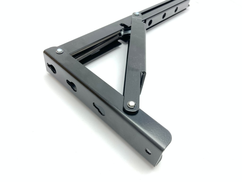 Kování pro sklopné stoly. Skvělé řešení například v prostorech, kde není tolik místa k umístění stolu na trvalo. Vysoká nosnost, až 100 kg (platí při rovnoměrném zatížení a použití dvou kusů).