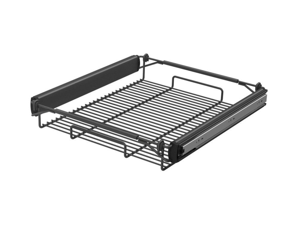 Polička má kuličková ložiska s plným výsuvem s tlumeným zavíráním.