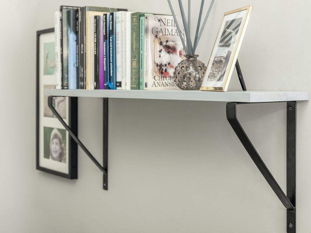 Designová podpěra police vynikne v každém interiéru, její hloubka 220 mm dobře poslouží i pod police s knihami. Instalace je jednoduchá, stačí pouze dva vruty s hmoždinkou do stěny a dva vruty do police (doporučujeme lamino, dřevo apod.).