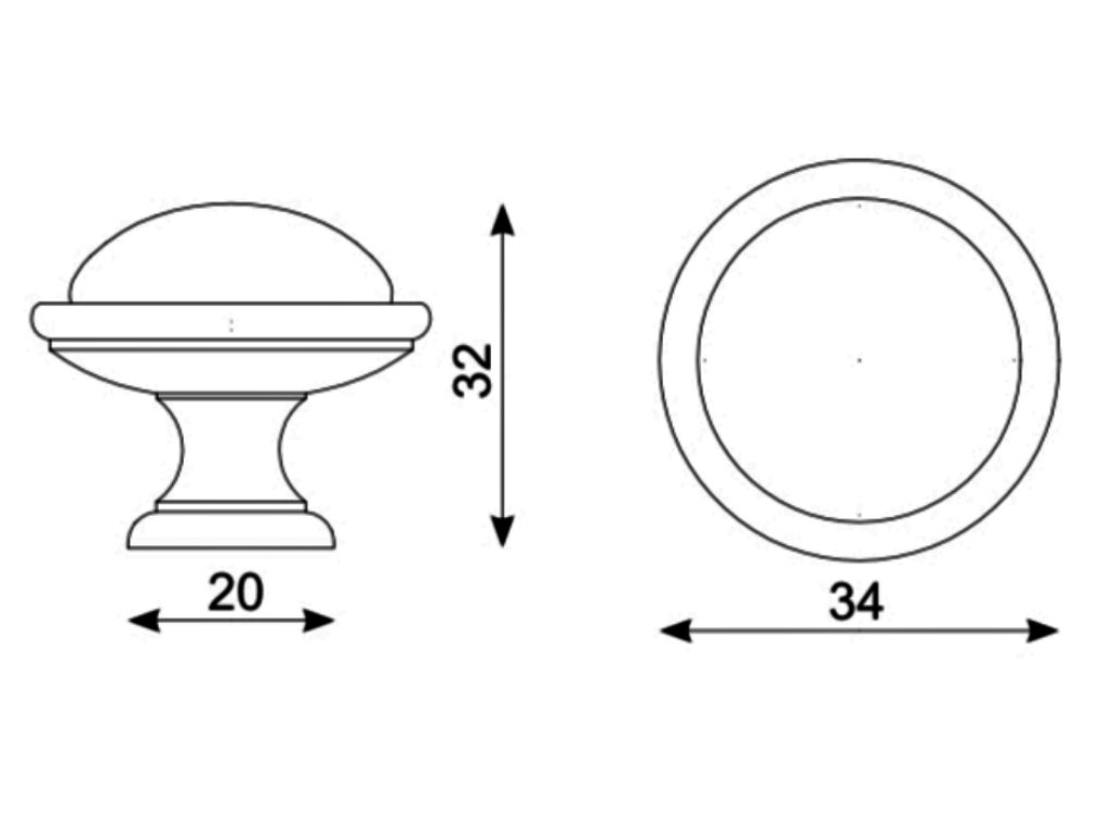 Technické parametry porcelánové knopky Stela ( uvedeno v mm ) |