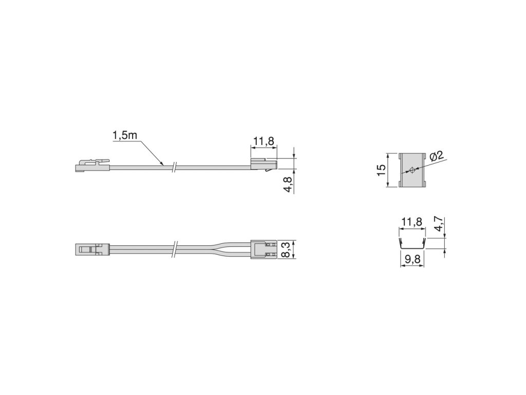Kabel je vybaven Miniled konektorem pro rychlé a bezpečné zapojení v systému 24 V DC. Součástí balení jsou 3 montážní klipy, které usnadní vedení a fixaci světla uvnitř korpusu nebo profilu.