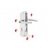 Standardní tloušťka bezpečnostních dveří je 40 mm. Jak prodloužit bezpečnostní kování? Je to jednoduché, jen zvolíte typ kliky, tloušťku dveří a k němu vhodnou prodlužovací sadu. V kombinaci s danou klikou se můžete pohybovat v tloušťce dveří až do 90 mm.