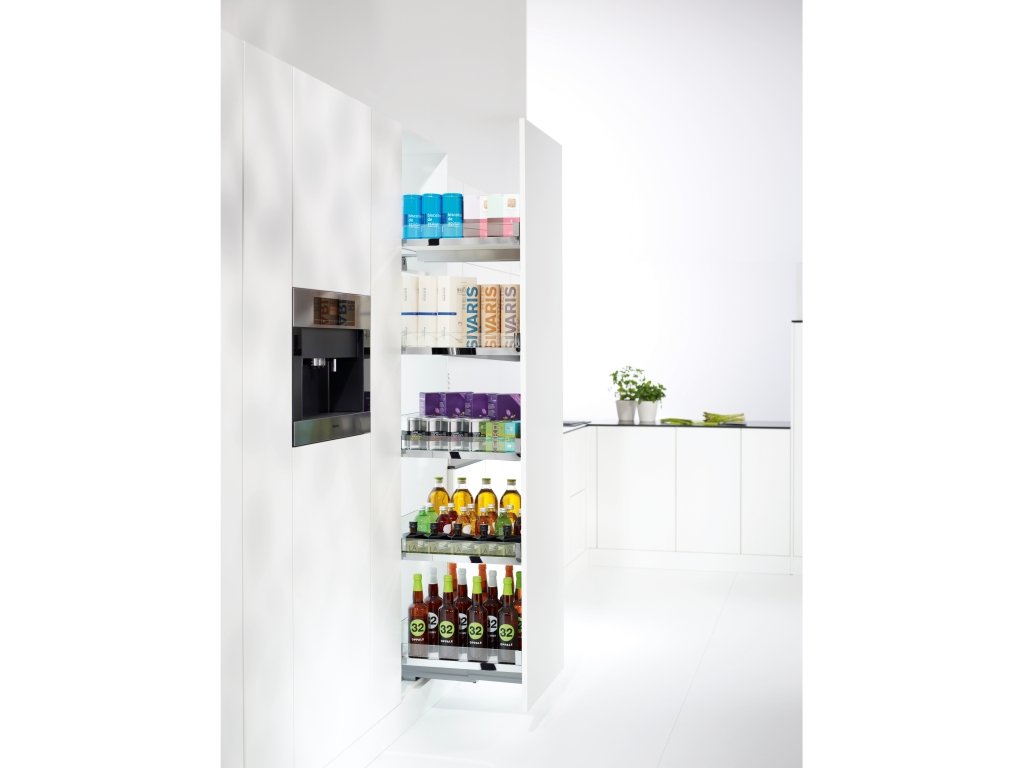 Vysoký potravinový rám je vhodný k použití do kuchyňské potravinové skříně. Jedná se o luxusní variantu vybavení potravinové skříně.