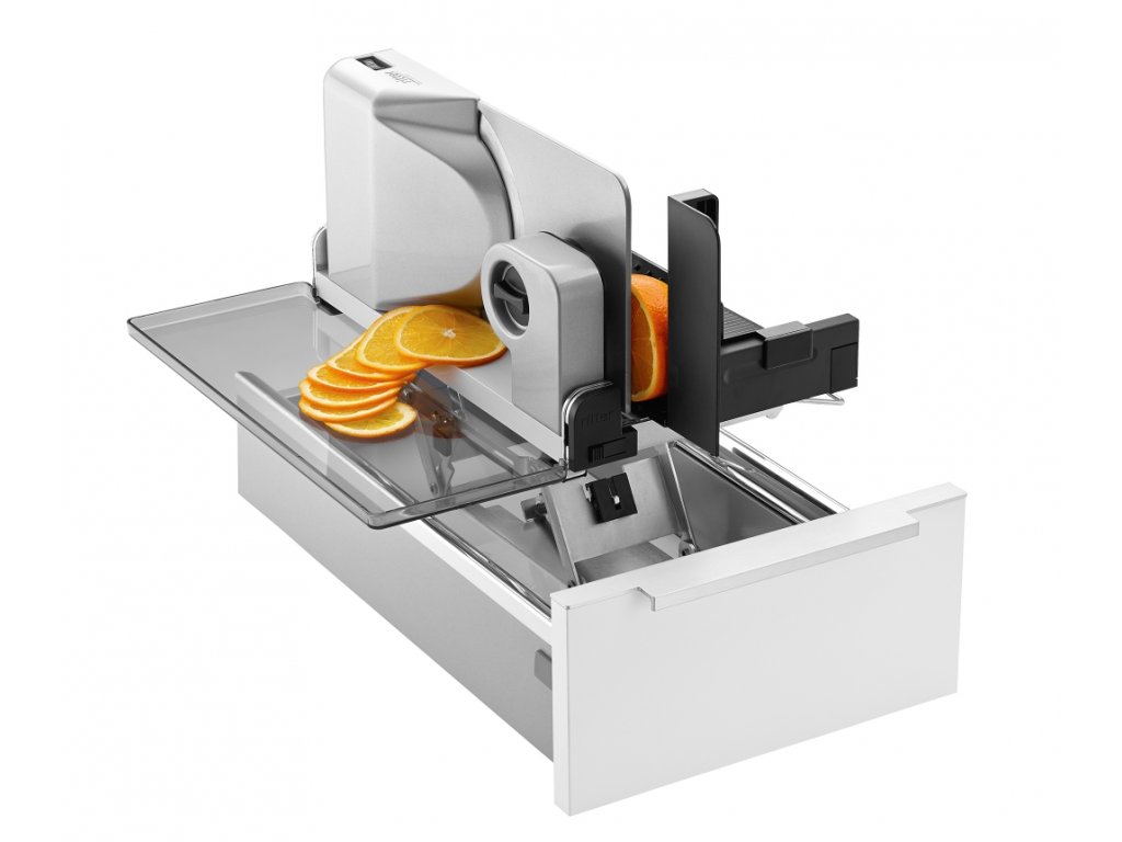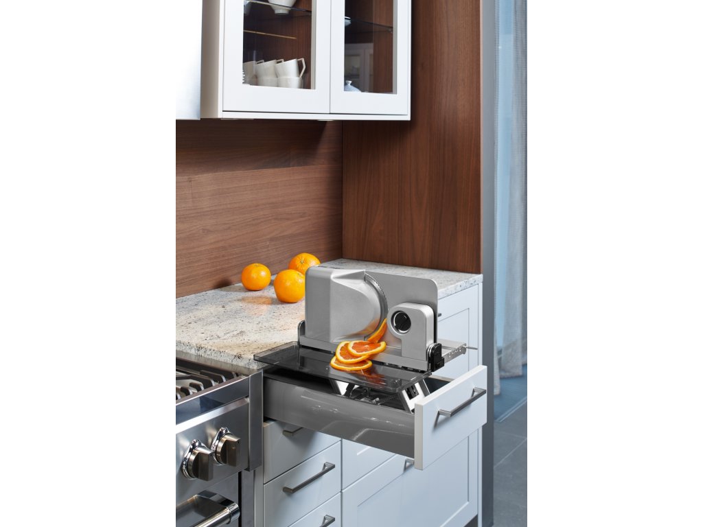 - Uvolníte si místo – kráječ snadno schováte do zásuvky a na lince máte více prostoru.