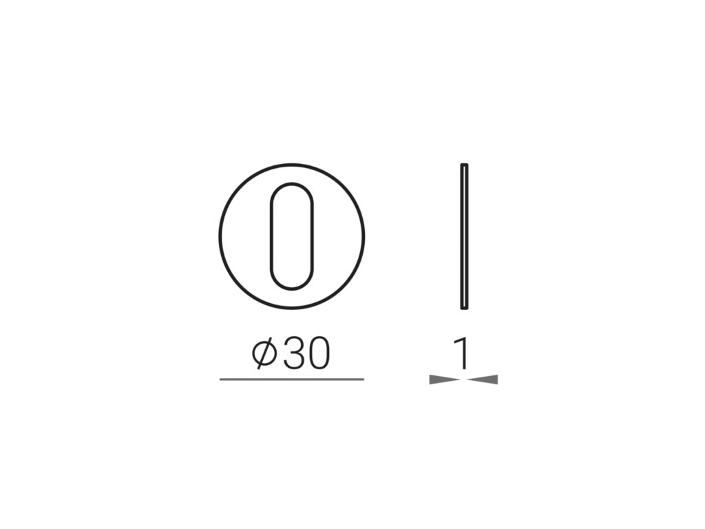 Kulatá rozeta pod kliku v černé matné povrchové úpravě, která má průměr 30 mm a tloušťku 1 mm.