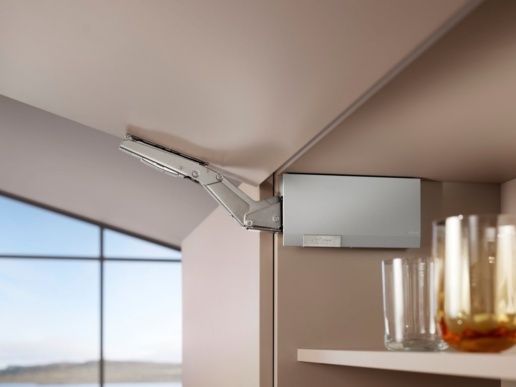 Možnost kombinace s elektrickým pohonem Servo-Drive – Pro ještě pohodlnější používání je možné Aventos HK TOP kombinovat s technologií Servo-Drive, která umožňuje automatické otvírání skříňky pouhým dotykem a následným tlumeným zavřením.