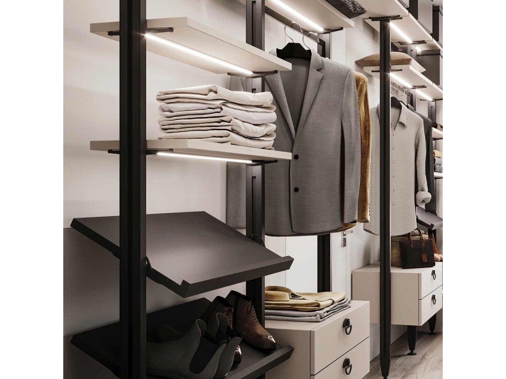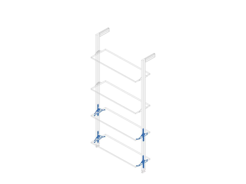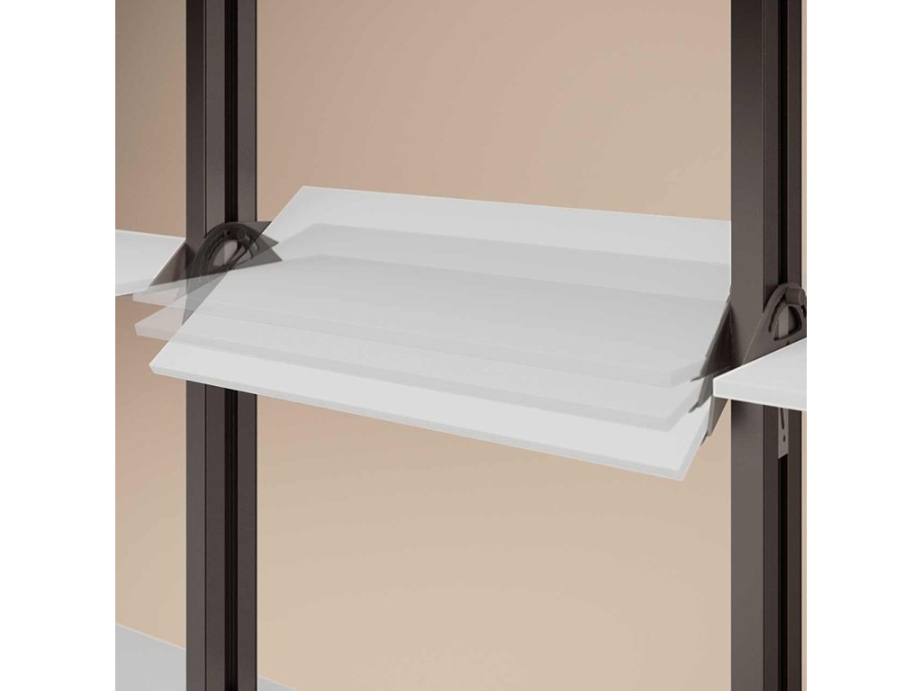 sada je vhodná pro uchycení šikmé police do nosného profilu systému ZERO. Je nastavitelný v úhlech12º/24º/36º/48º/60º. Instalace je velmi jednoduchá.