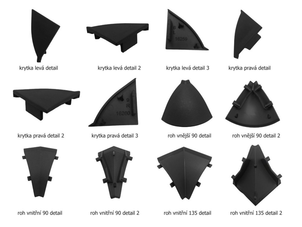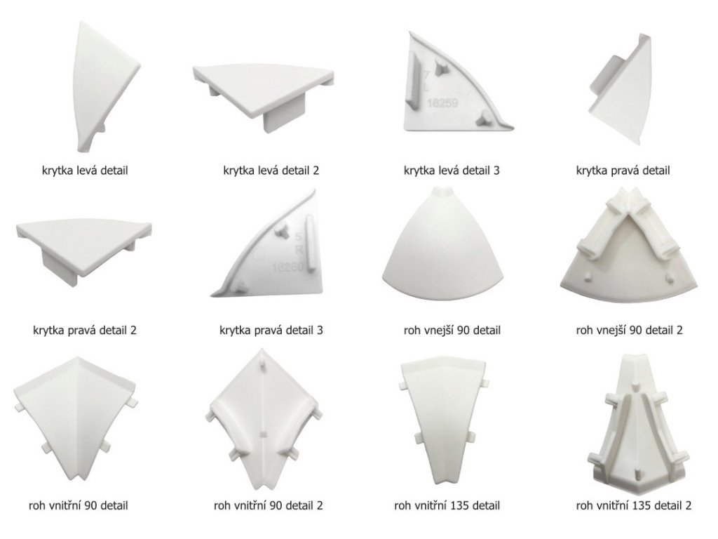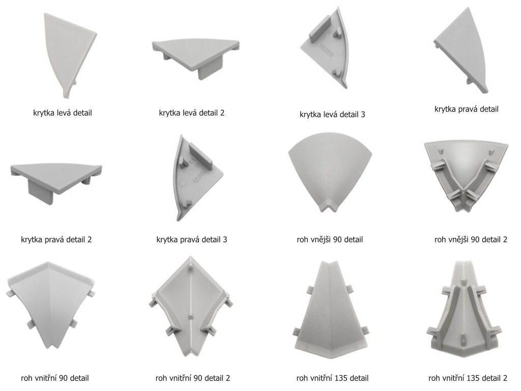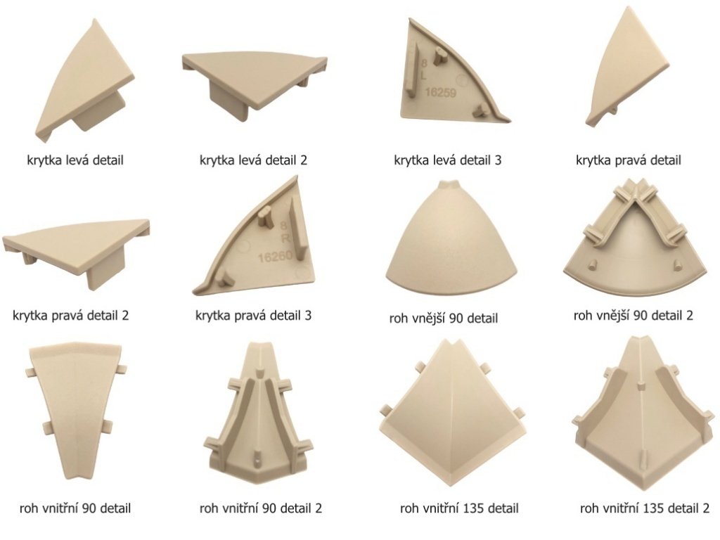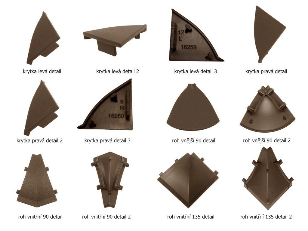 Sada koncovek pro těsnící lištu je vyrobena z materiálu plast a dostupné v barvách šedá, bílá, antracitová, béžová a tmavě hnědá.