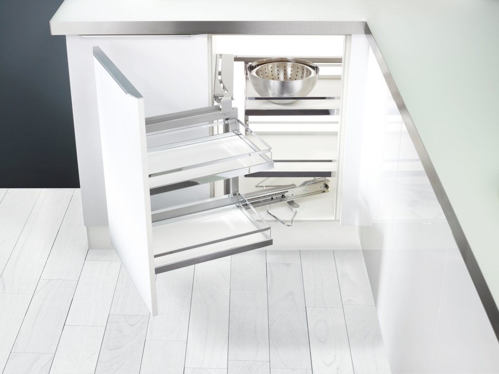 Koše pro rohové skříně systému MagicCorner. Protiskluzové plné dno arena style.
