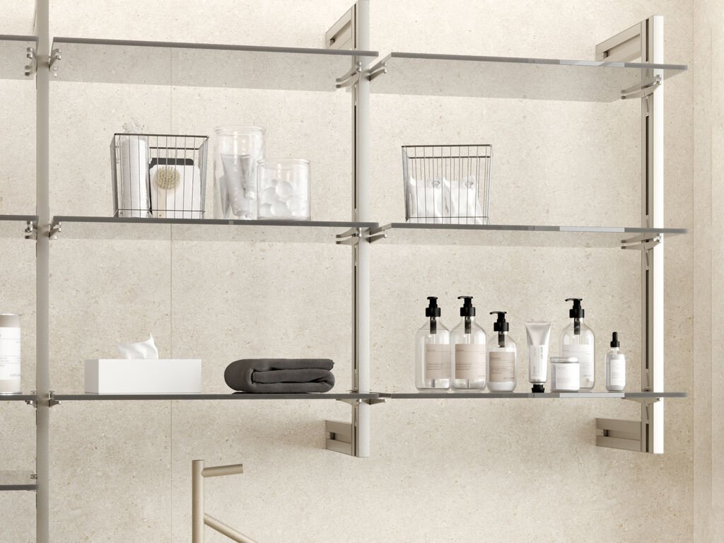 sada je vhodná pro zavěšení menších policových systému na zeď. Nosnost je 80 kg. Instalace je velmi jednoduchá, kotví se pouze do zdi a do profilu.