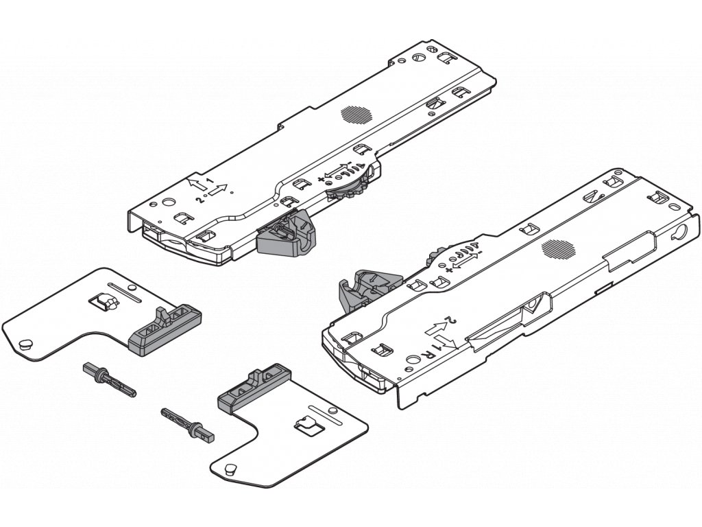 Sada umožňuje v systému výsuvu LEGRABOX, MOVENTO docílit technologie výsuvu TIP-ON a BLUMOTION v jednom.