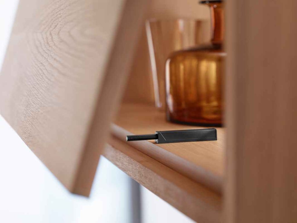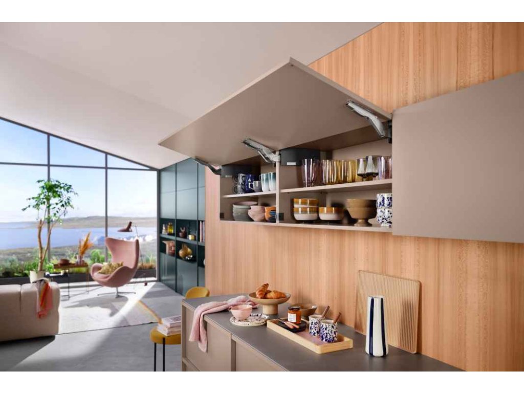 výklop vhodný téměř pro všechny skříňky. Šířka korpusu až 1 800 mm a výšku od 205 - 600 mm. Výklop se otevírá zatlačením na dvířka. TIP-ON sada se montuje do hrany korpusu, nebo na dno pomocí adapteru. Montáž výklopu bez nářadí velmi rychlá a jednoduchá.