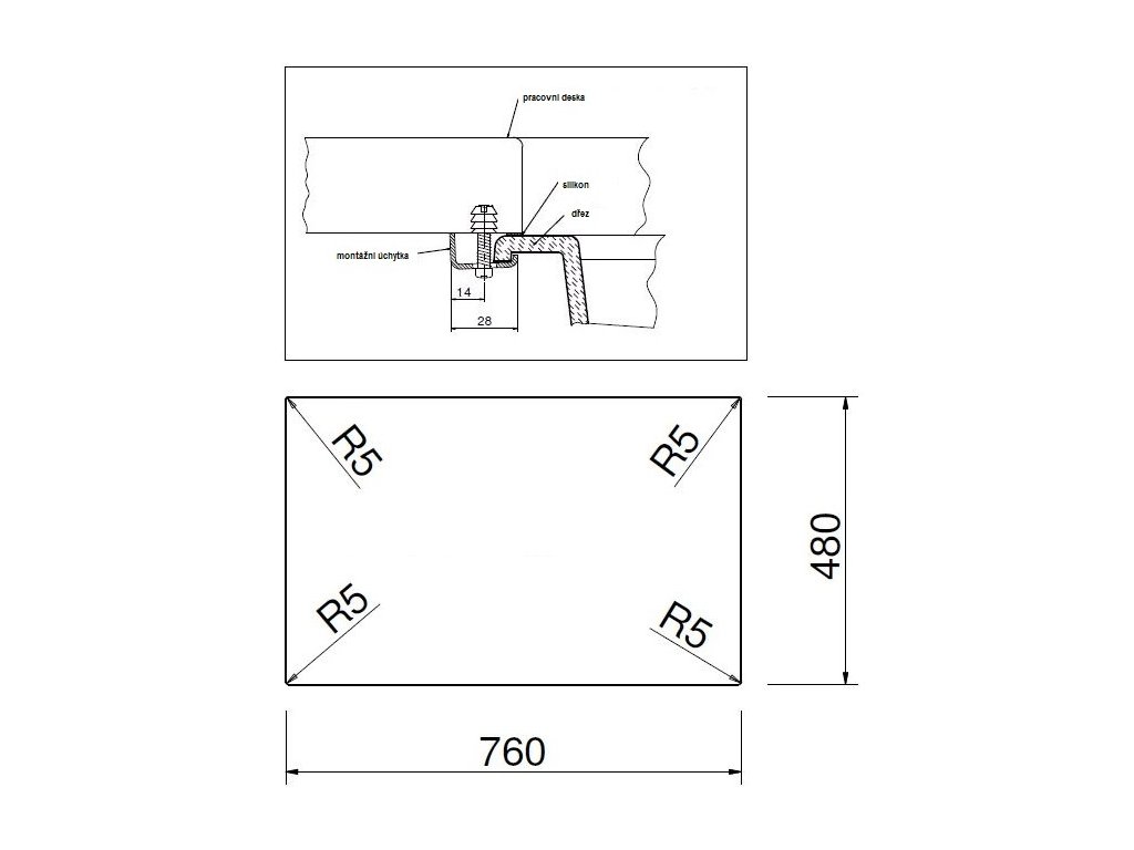 Vnější rozměr dřezu D x Š x H: | 780 x 500 mm |