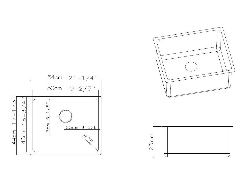 Nerezový jednodřez Sinks BLOCK 540 V 0,8 - 1 mm matný se sítkovou výpustí.