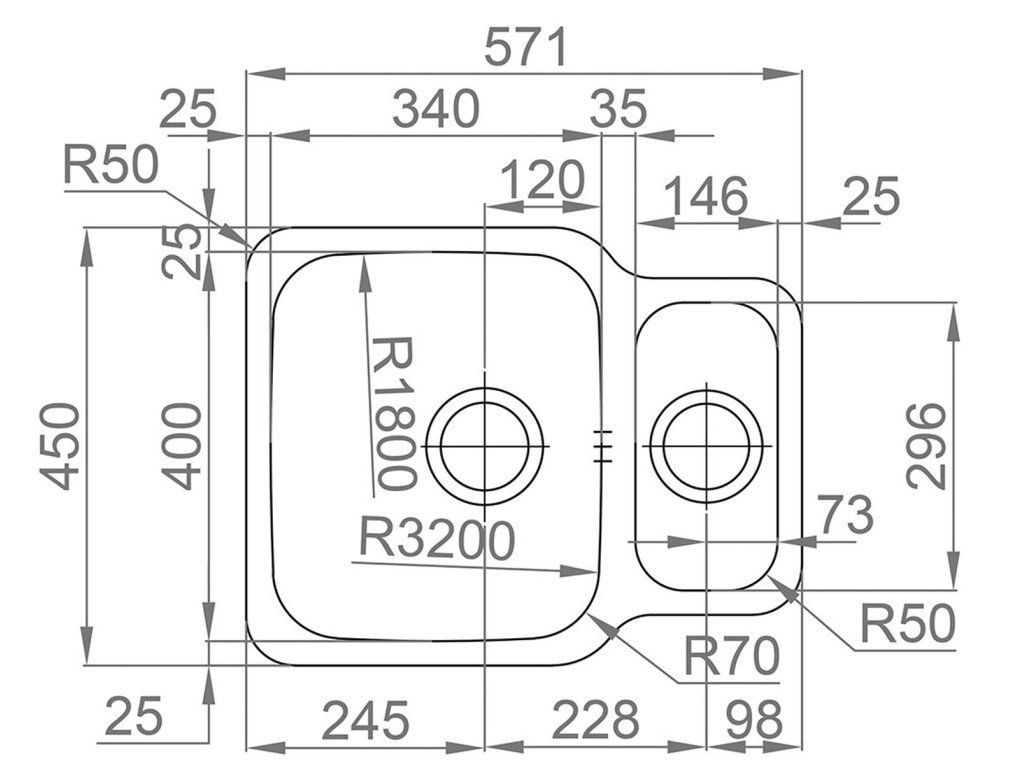 Rozměr dřezu 571 x 450 mm a hloubka 200/150mm. Je určen pro skříňku od 600 mm. Dřez je vyroben z nerezu o tlouštce 1,0 mm. Záruka 15 let.