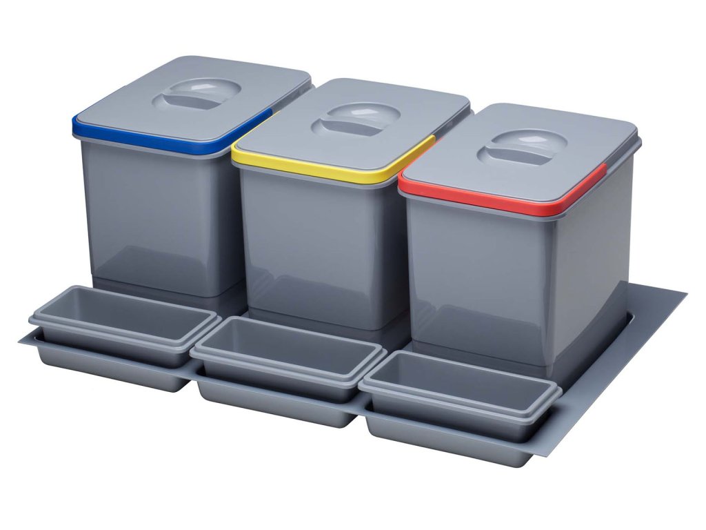 Sestava košů Sinks PRACTIKO 800 pro vložení do zásuvky 3x 15 L včetně misek