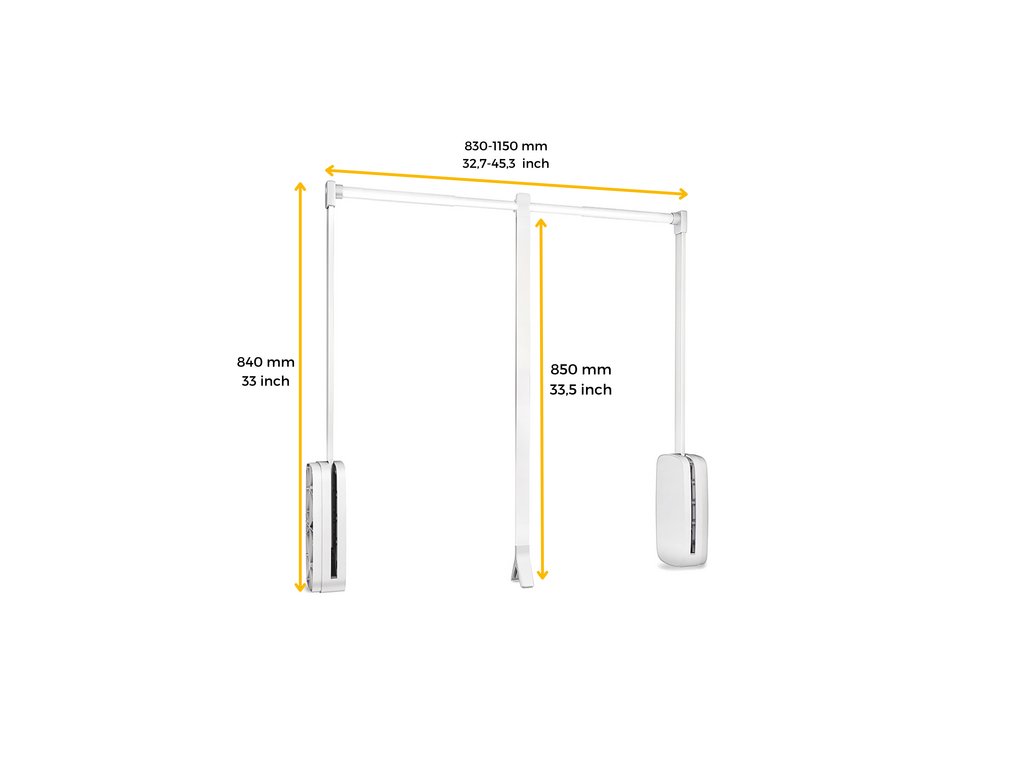 Pro šířku skříně 450 – 1150 mm – ideální pro běžné šatní skříně.