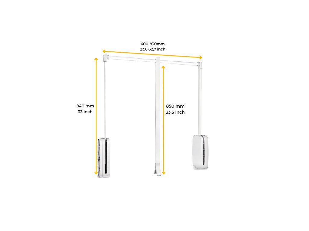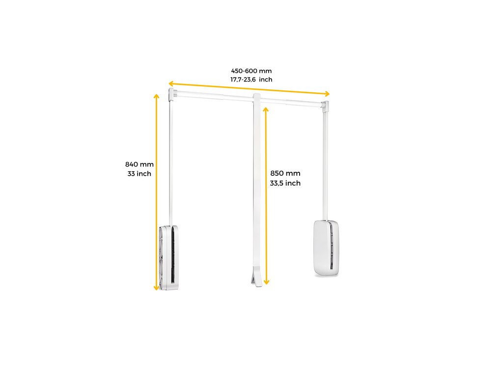Pro šířku skříně 450 – 1150 mm – ideální pro běžné šatní skříně.