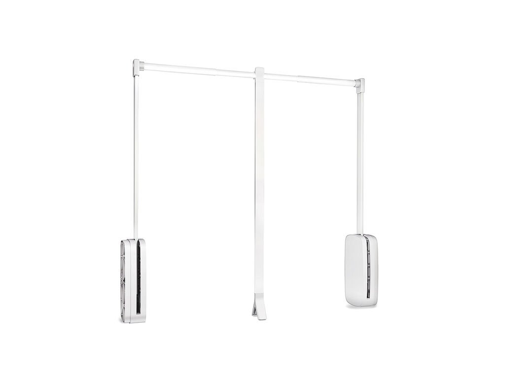 Sklopná šatní tyč je praktické řešení pro maximální využití prostoru ve vyšších skříních. Díky jednoduchému olejovému mechanismu je možné tyč snadno spouštět a zvedat, což usnadňuje přístup k oblečení umístěnému ve vyšších částech skříně. Po spuštění zůstává tyč ve stabilní poloze, takže oblečení lze pohodlně sundat.