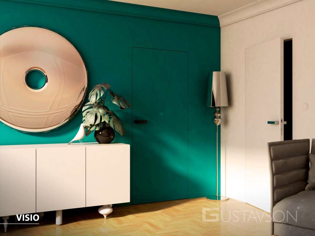 Systém skrytých dveří Visio umožňuje dosažení dokonalého zarovnání dveří se stěnou. Díky speciálnímu řešení konstrukce zárubně a skrytým závěsům je tento efekt možný. Pokud jsou navíc dveře natřeny stejnou barvou jako stěna, dosáhneme kontinuity mezi stěnou a dveřmi v místnosti. Nebo naopak můžete použít jako kontrastní prvek.