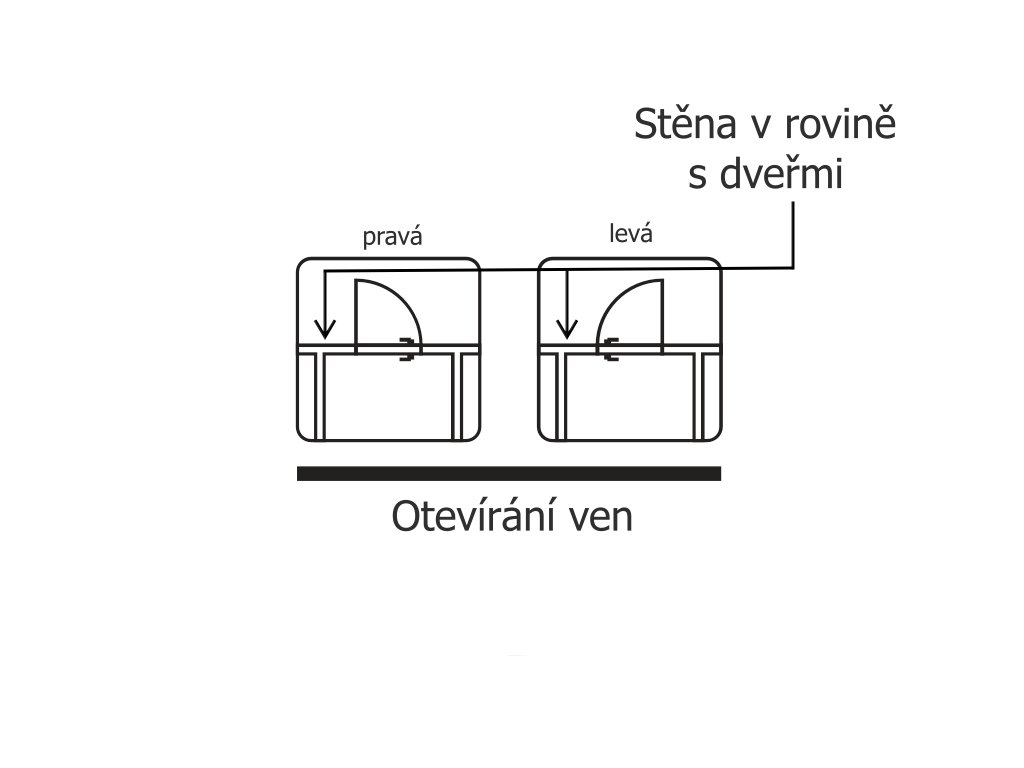 - způsob otevírání dveří - je možnost otevírat dveře "dovnitř" nebo "ven" - jedná se o směr otevírání vůči zdi se kterou jsou dveře v jedné rovině (opačnou variantu naleznete v podobných produktech)