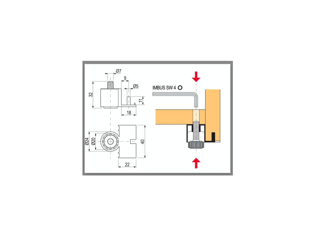 kluzák se reguluje pomocí imbusu, předem připraveným otvorem.