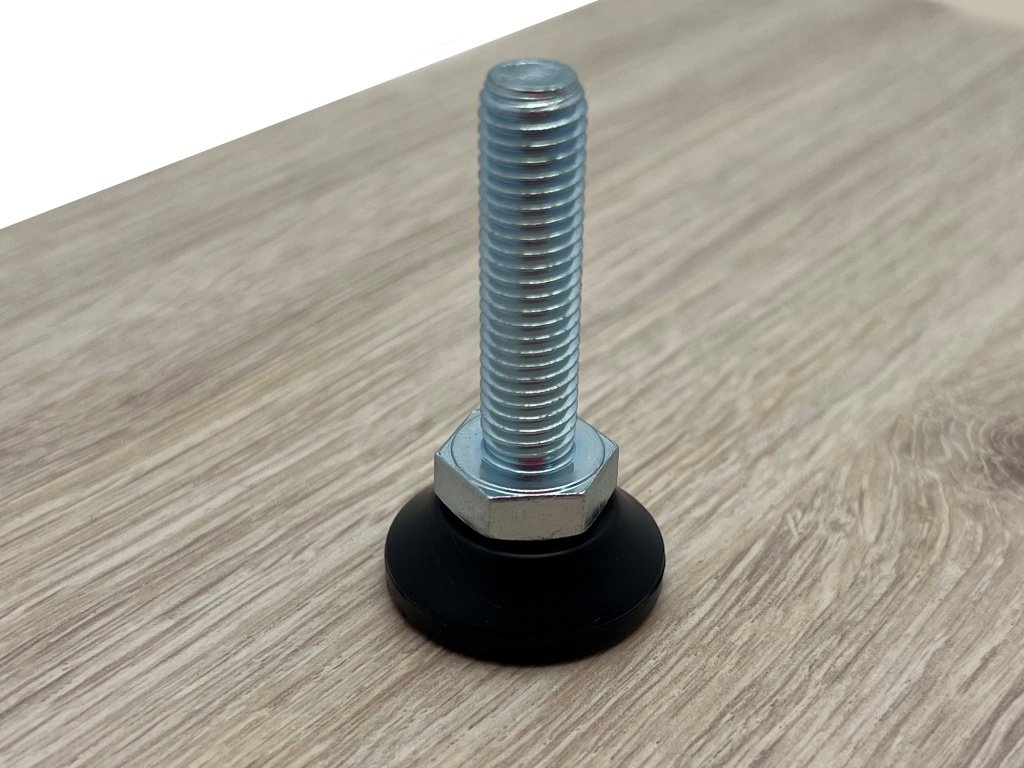 Stavěcí šroub s kovovým závitem v délce 40 mm a plastovou základnou o pr. 30 mm, která je pohyblivá a přizpůsobí se tak nerovnostem podlahy apod. a také zabraňuje poškrábání.