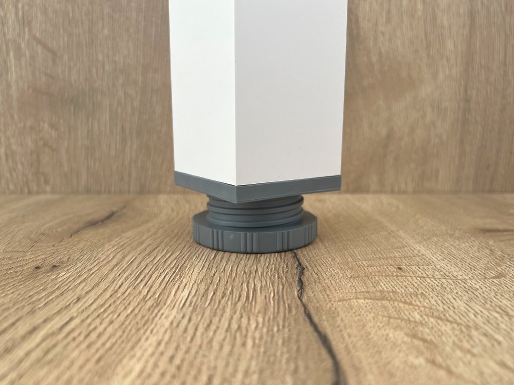 Stolová noha Nyko s profilem 60×60 mm a povrchovou úpravou v elegantní bílé barvě je ideální pro moderní interiéry, od konferenčních až po barové stoly. Díky rektifikačnímu mechanismu s možností nastavení výšky až o +25 mm snadno dorovnáte výšku stolu a eliminujete nerovnosti podlahy. Masivní horní příruba zajišťuje pevné uchycení desky bez viklání a montáž je snadná díky předvrtaným otvorům.