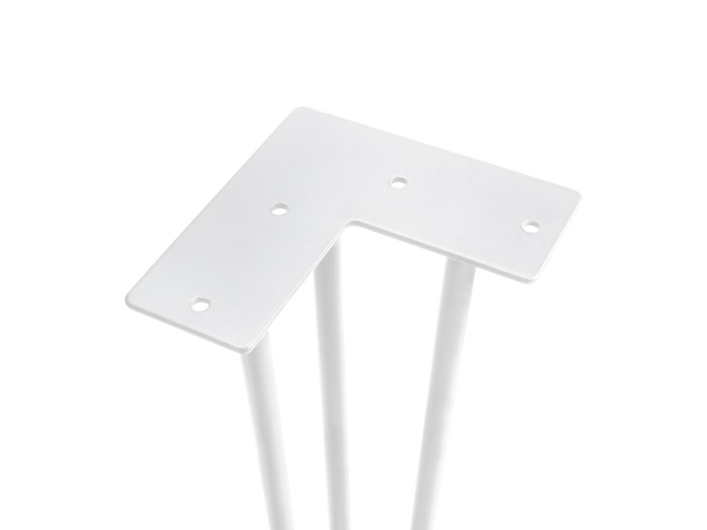 Ocelová nábytková noha v bílé povrchové úpravě, barvená pomocí práškového lakování. S robustní kovovou přírubou. Díky své barvě a tenkým liniím vytváří moderní vzhled nábytku, oživí celou místnost.