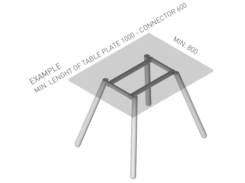 Průměr profilu nohy je 50 mm. Horní část podnože je v provedení černé barvy RAL9005FE.