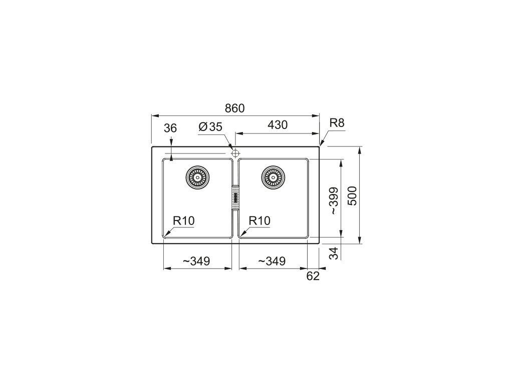 | Dřezy - vnější šířka (mm): | 860 |