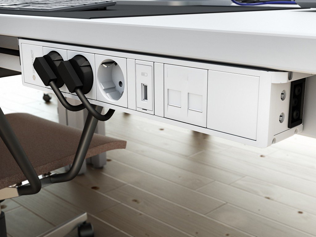 Jedná se o komplet uchycení pro jednu zásuvku, tedy 2x úchyt a 4x vrut pro připevnění (vhodné pro tl. 18 mm). Popřípadě lze použít i delší vlastní vruty o pr. 3-4 mm.