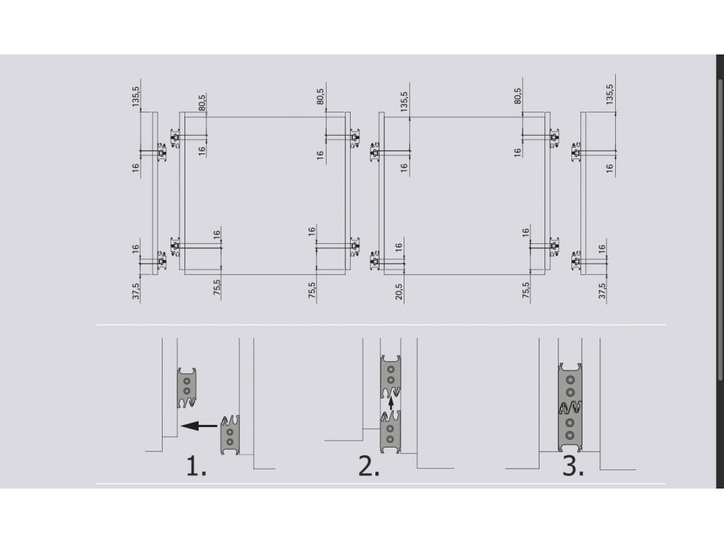 Sestavu lze doplnit o elegantní rohy vnitřní nebo vnější a koncovky. Pokud je bok korpusu odkrytý.
