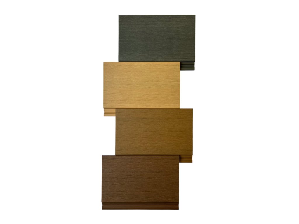Vyrobeno z plastového recyklátu (92%) a granulátu (8%) jedná se tedy o materiál ekologický svým původem. Následně potaženo fólií s imitací dřeva, která kopíruje možnosti se maximálně přiblížit vzhledu dřeva. Tento materiál je odolný pevný a skvěle se s ním pracuje. Dá se použít i do prostor se zvýšenou vlhkostí (okolí bazénu, wellnes apod.).