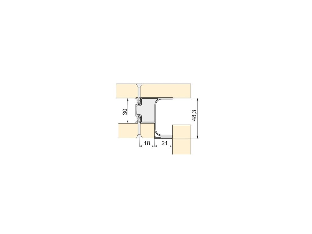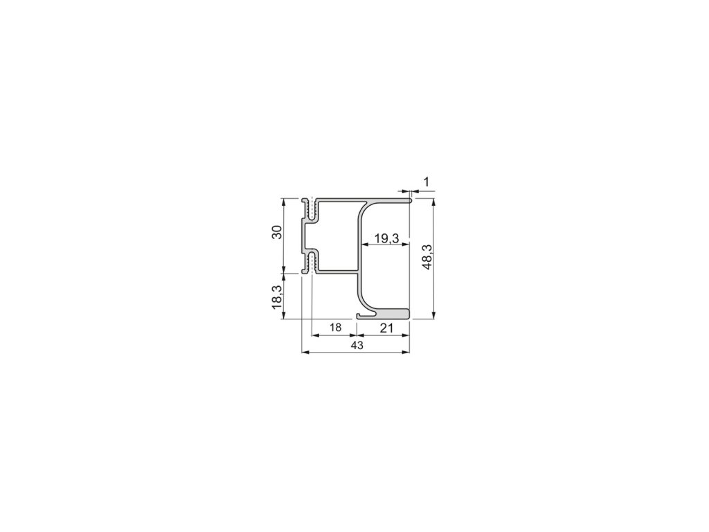 Profil je z kvalitního hliníku, dodáván v délce 2 550 mm a je snadno zkratitelný dle konkrétní potřeby instalace. Montáž je jednoduchá — postačí přichycení pomocí vrutů (doporučeno 3,5 × 25 mm) a použití distančních podložek pro správné usazení zadní části korpusu. Viditelné plochy profilu jsou chráněné fólií, která zabraňuje poškrábání během práce.