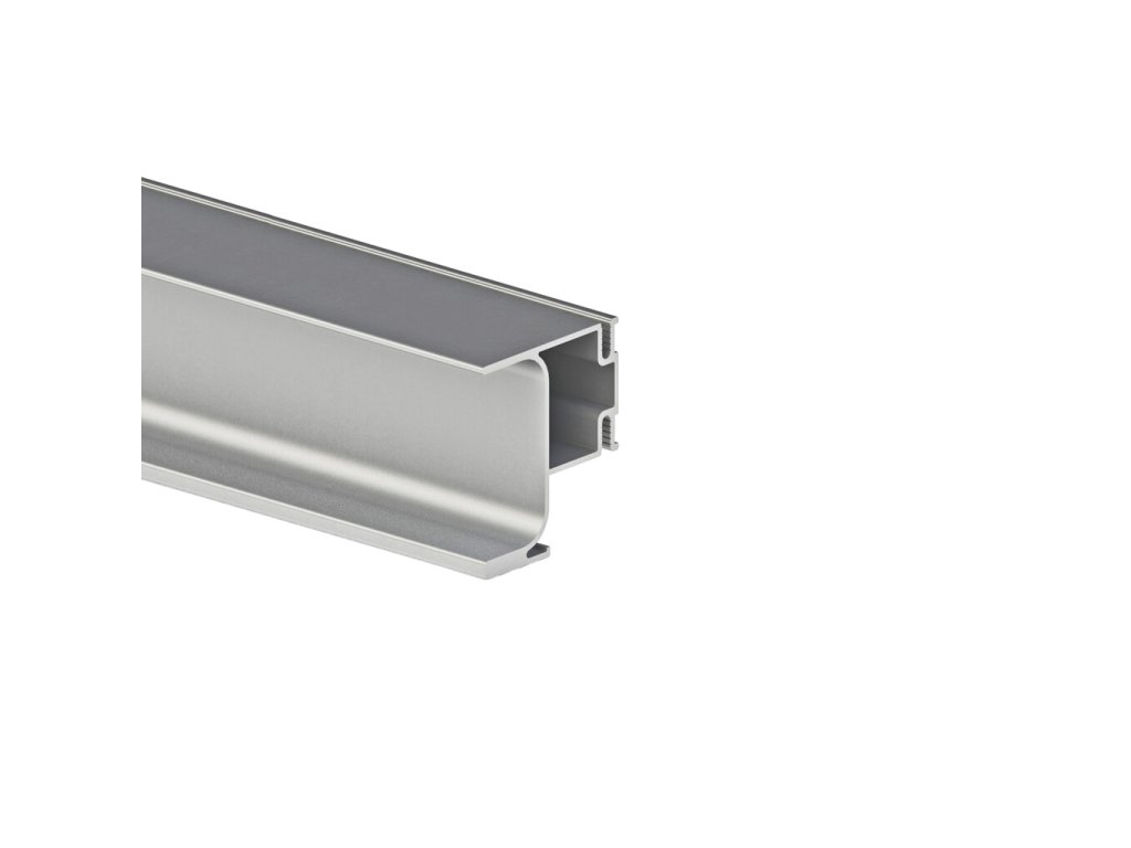 Profil je z kvalitního hliníku, dodáván v délce 2 550 mm a je snadno zkratitelný dle konkrétní potřeby instalace. Montáž je jednoduchá — postačí přichycení pomocí vrutů (doporučeno 3,5 × 25 mm) a použití distančních podložek pro správné usazení zadní části korpusu. Viditelné plochy profilu jsou chráněné fólií, která zabraňuje poškrábání během práce.