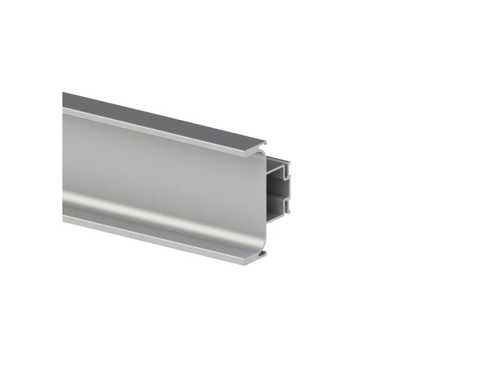 Profil je z kvalitního hliníku, dodáván v délce 2 550 mm a je snadno zkratitelný dle konkrétní potřeby instalace. Montáž je jednoduchá — postačí přichycení pomocí vrutů (doporučeno 3,5 × 25 mm) a použití distančních podložek pro správné usazení zadní části korpusu. Viditelné plochy profilu jsou chráněné fólií, která zabraňuje poškrábání během práce.
