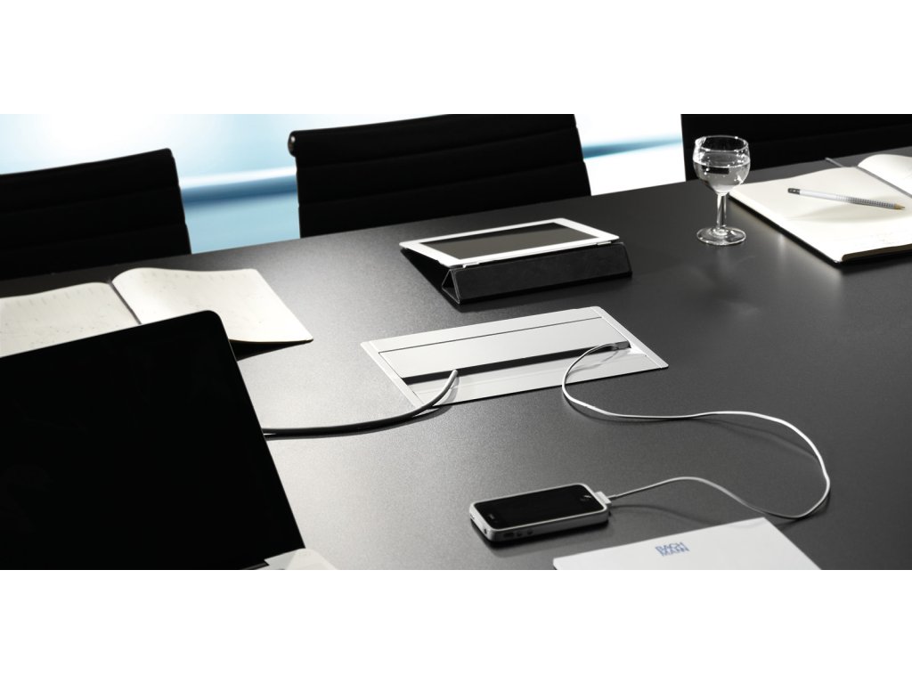 velmi variabilní řešení datových a napájecích zdrojů na stole, jedná se o rámeček vhodný k vybavení různou kombinací. Kompatibilita zásuvkových jednotek se sortimentem KEYSTONE to zaručuje. Zavřený rámeček elegantně splývá s povrchem stolu, pro otevření stačí přitlačit na magnetem přichycené víko, které se odklopí. Po připojení zařízení jako jsou Notebook, tablet apod., lze uzavřít. Vnitřní vybavení zásuvkové jednotky, lze měnit bez nářadí. Toto řešení Vám umožní jít s dobou...