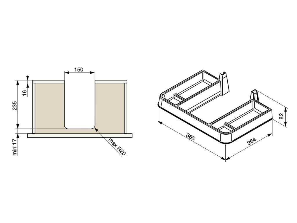Vklad s límcem pro výřez pod umyvadlo/dřez antracit 365x264