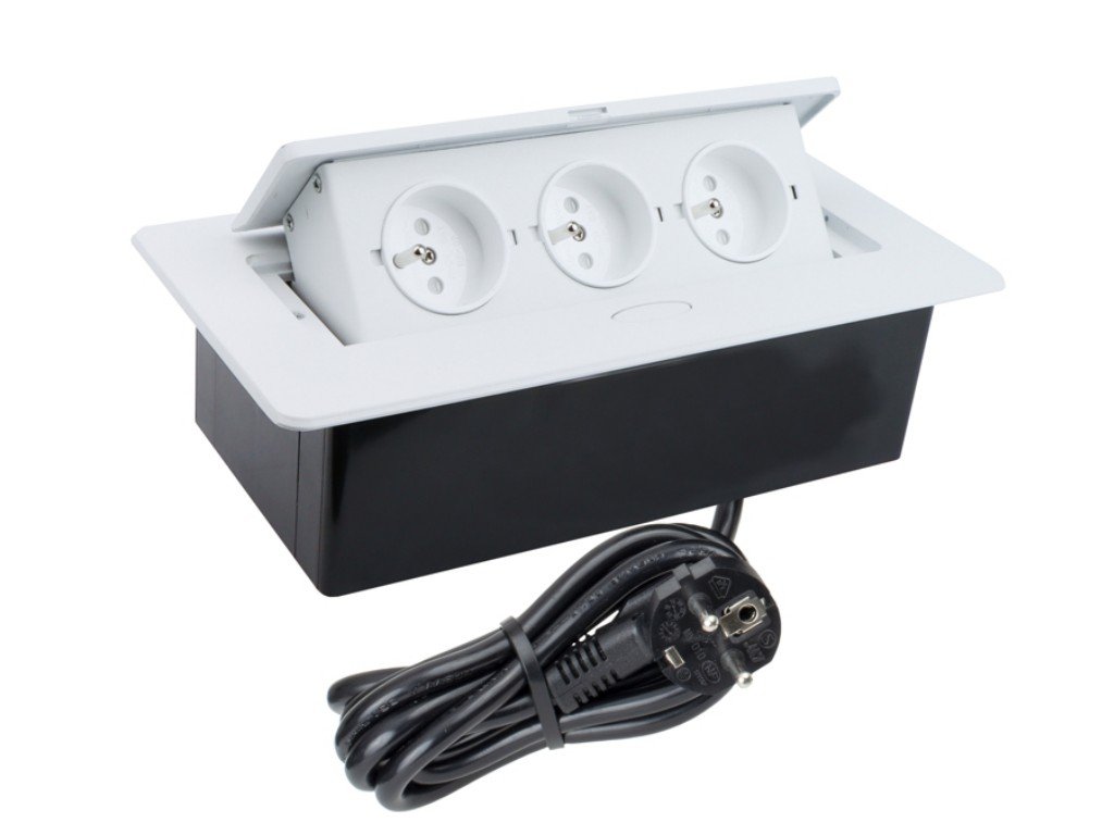Výklopná vestavná zásuvka BOX 3x 230V s připojeným 3m nap. kabelem - bílá