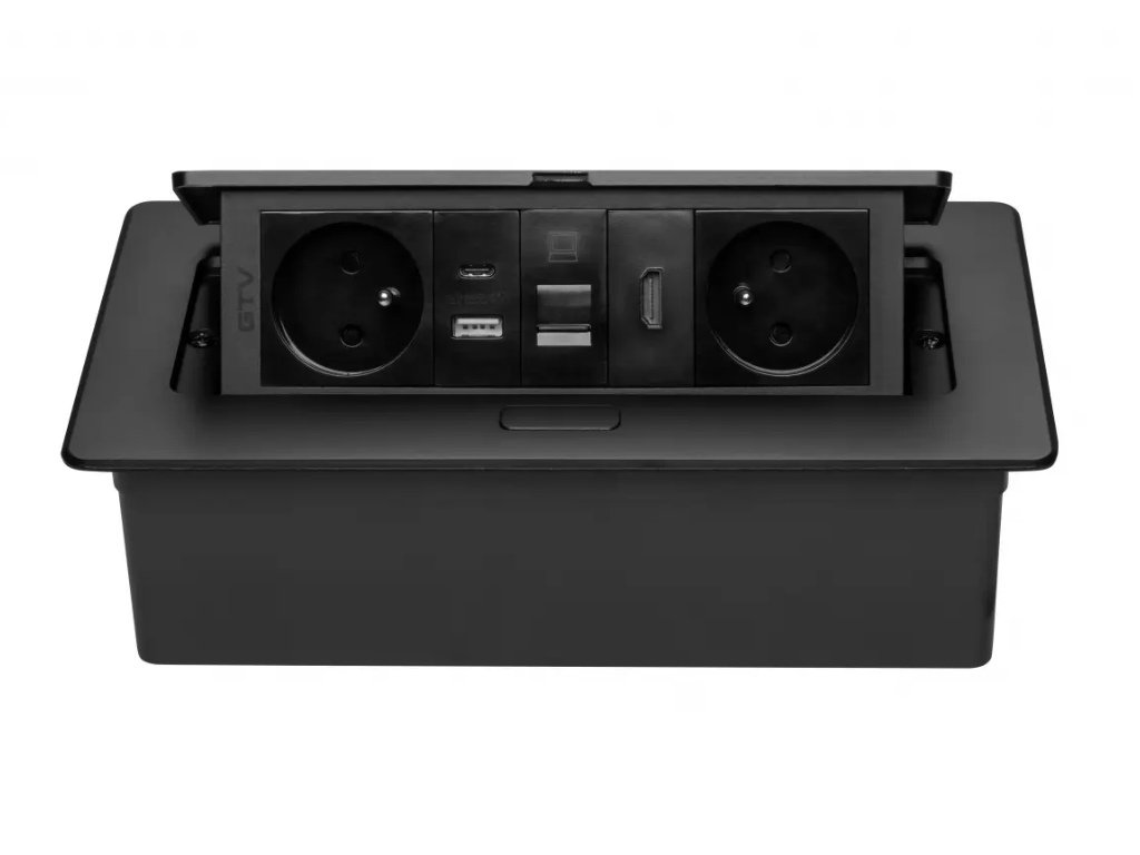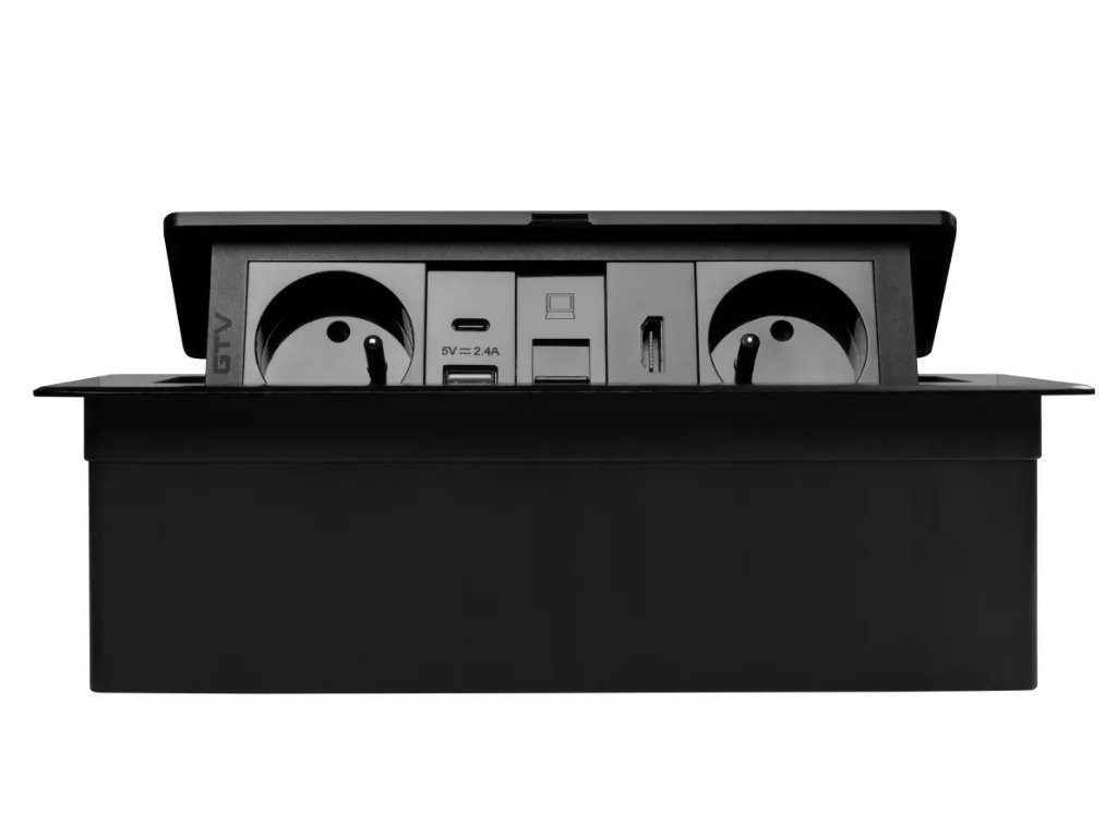 Výklopná zásuvka MULTIBOX 2x230V + USB nabíječka A/C + RJ45 a HDMI - černá