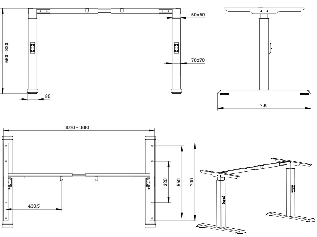 | Rozsah šířky stolu (mm): | 1070 - 1880 |