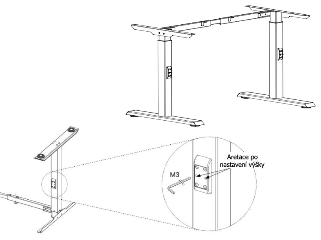 Nohy jsou složeny ze dvou částí, které se navzájem překrývají a zajišťují maximální výšku stolu až 900 mm. Výška podnože lze nastavit v rozmezí 650 - 830 mm, výška lze nastavovat v krocích po 20 mm. Na podnoži se nachází pravítko, pro jednodušší nastavení výšky na obou stranách podnože.